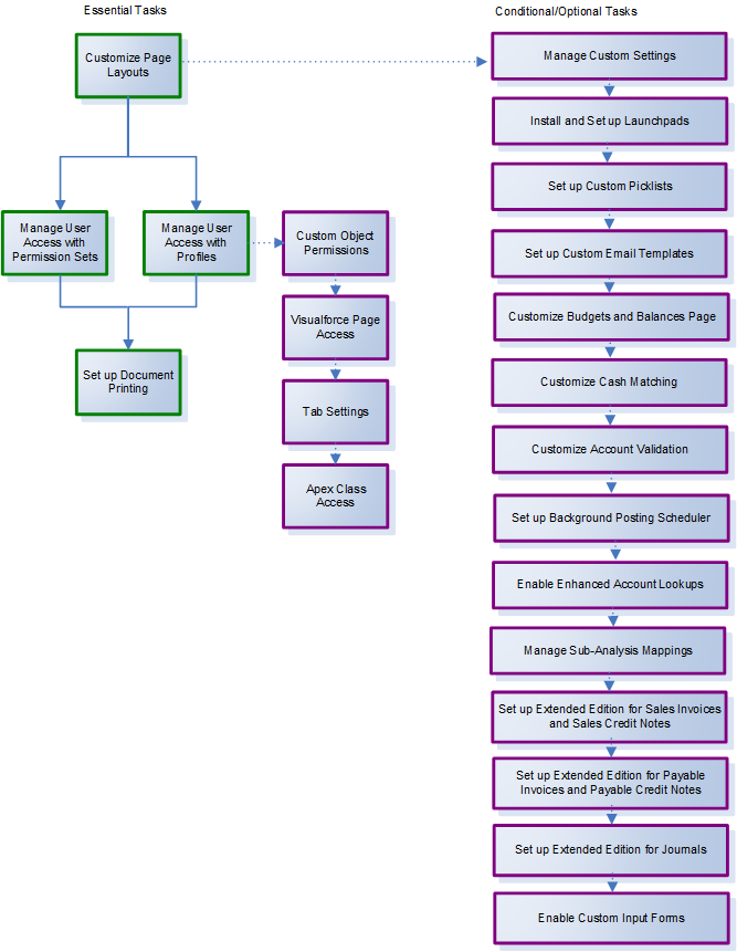 Click on the following chart to display a corresponding setup topic, then carry out the setup tasks described there. You should be signed in as the System Administrator, or equivalent, to complete these tasks. Click System Administrator Setup in the Contents pane to return to this page.