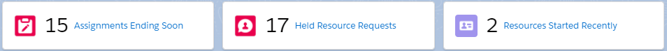 Your administrator can customize the Assignments Ending Soon, Held Resource Requests and Resource Started Recently count cards using the Lightning App Builder, for more information, see Setting up FinancialForce Count Cards in the Foundations Help.