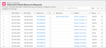 The Resource Requests List View displays a list of held and unheld resource requests with the status of not "Canceled" and without assignments.