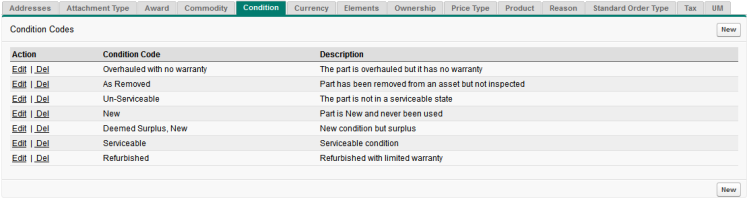 The Condition tab in the codes tab enables you to create codes to track the condition of inventory items throughout your acquisition, order fulfillment, inventory management and finance processes.
