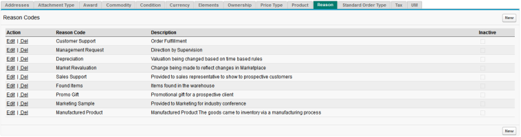 The Reason tab in the Codes tab determines the reasons that you can choose from when carrying out actions on the inventory in your organization.