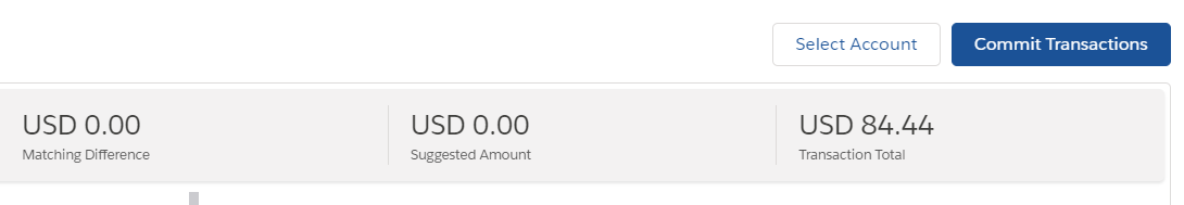 When you reach a Match Difference of 0.00, click Commit Transactions to review and amend the journal details as necessary. To finish, click Commit. See About Cash Matching for more information about what happens when you commit a match.