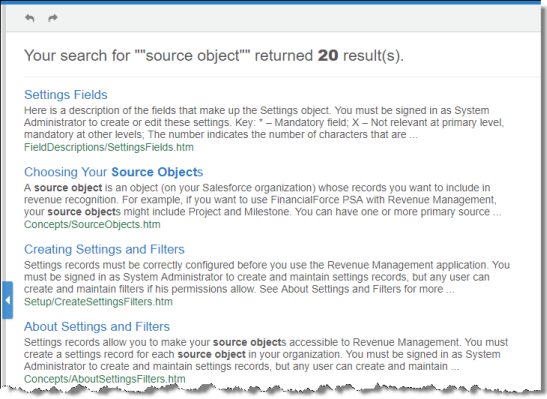 - Type "source object" into the Search field on the header. Note the use of double quotes when looking for multi-word phrases.