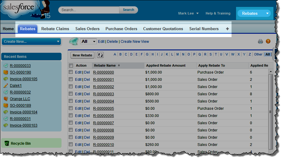 In FinancialForce Supply Chain Management you can manage and track rebates offered by a manufacturer in the Rebates app. You can also show the effect of rebates on documents such as customer quotations, sales orders, purchases and invoices.