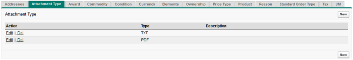 The Attachment Type tab in the codes tab enables you to manage the types of files that you can attach to receipt lines. If you want SCM users to attach documents to receipt lines, at least one attachment type must exist.