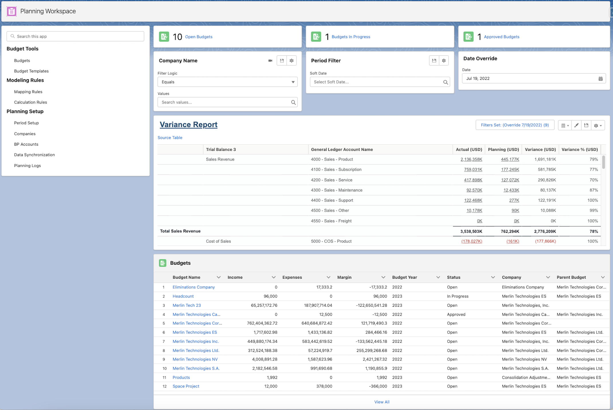 Planning Workspace Overview