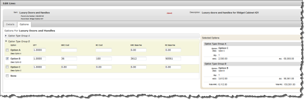 Configuring Options on a Customer Quotation Line