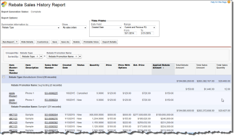The Rebate Sales History report tracks the sales history of all items associated with rebates. You can use this report to determine the effectiveness of rebate programs.