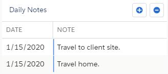 to add a daily note on the selected assignment. - A new note is created, either for today or the next day with hours entered against it.
