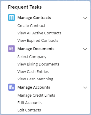 | Contracts Due for Renewal | The count of active Contracts due for renewal in the next 3 months. Displays the Total Contract Value (TCV) for all Contracts which have an end date in the next 3 months. | Displays a list view of all the Contracts due for renewal in the next 3 months. |