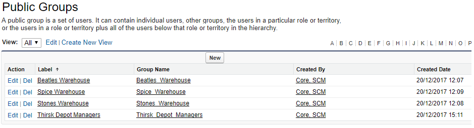 Public groups can be created for each set of users. A group can be warehouse workers that have been assigned to a specific warehouse or users that have been assigned the same role, for example warehouse managers as illustrated below: