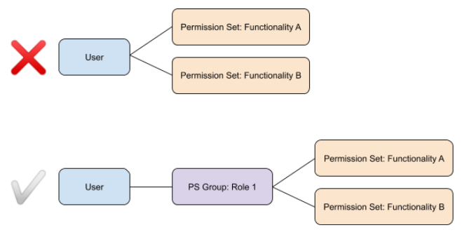 If a user performs more than one role, you can assign them the two permission set groups that correspond to those roles. If two job profiles have overlapping responsibilities, a permission set can be added to more than one permission set group. If two job profiles have overlapping responsibilities, a permission set can be added to more than one permission set group.