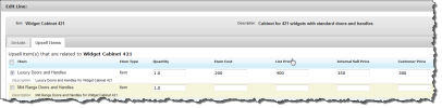 - When the Edit Line popup appears, click the Upsell Items tab.