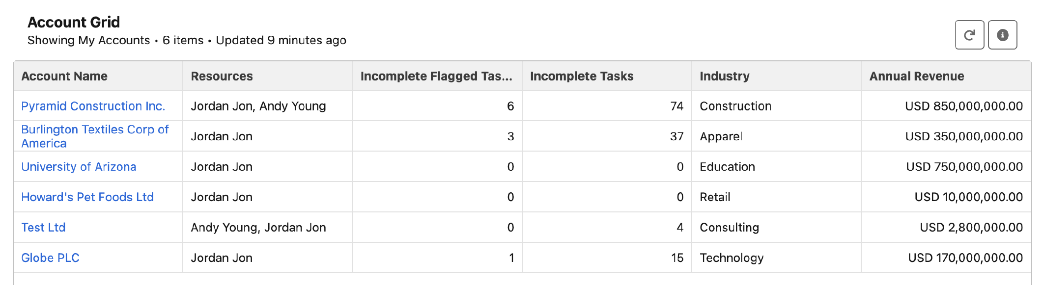 Account Grid enables you to view all of the accounts you are assigned the CSM of.