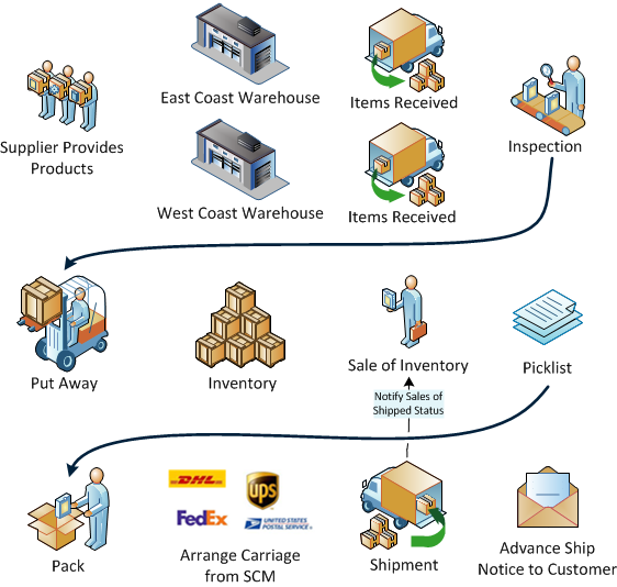 Stock. Products or services that are available to buy or items that form part of a product or service. Where the item is tangible such as hardware, that item may be held in a warehouse as stock, or ordered directly from a supplier when a customer places an order., and the tasks to be carried out at each warehouse. You can track inventory across your inventory network in many ways including: