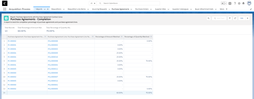 The Completion report helps you track the completion percentage of your purchase agreements and purchase agreement lines.