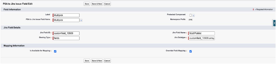 - In the Jira Field ID field, enter customfield_10909.