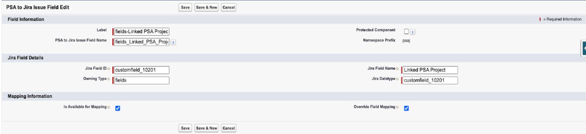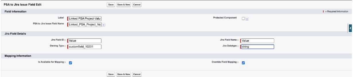 - In the Jira Field Name field, enter Linked PSA Project.