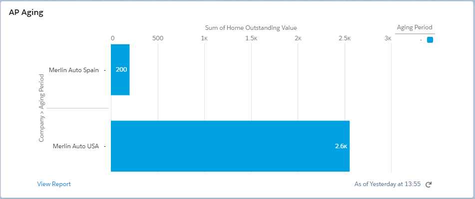 Note: The alerts contain aggregate monetary values in home currency. As different companies can have different home currencies, in multi-company mode these components display an error.