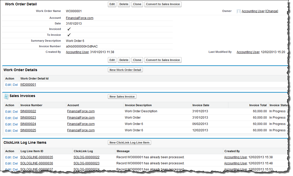 - Add the ClickLink Log Line Items related list to the page layout of the source object.