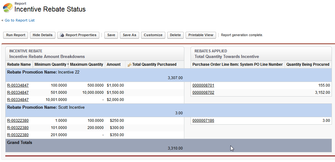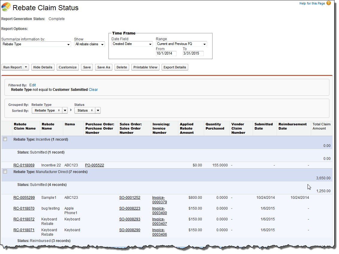 This section contains information about the rebate reports available in Order and Inventory Management. For information about the types of rebate that you can apply, see Rebates.