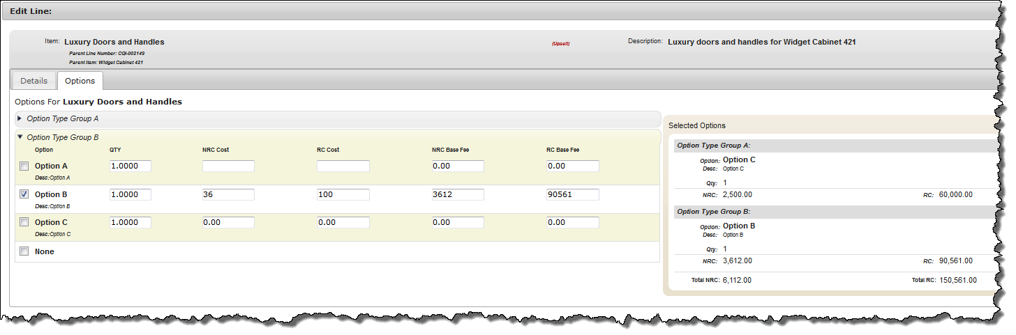 Configuring Options on a Customer Quotation Line