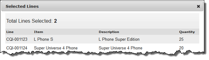 If you want to display a list of the selected lines, click Total Selected Lines.
