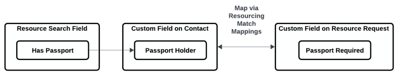 So in Resourcing Match Mappings, you map the resource request's Passport Required field to the contact's Passport Holder field: