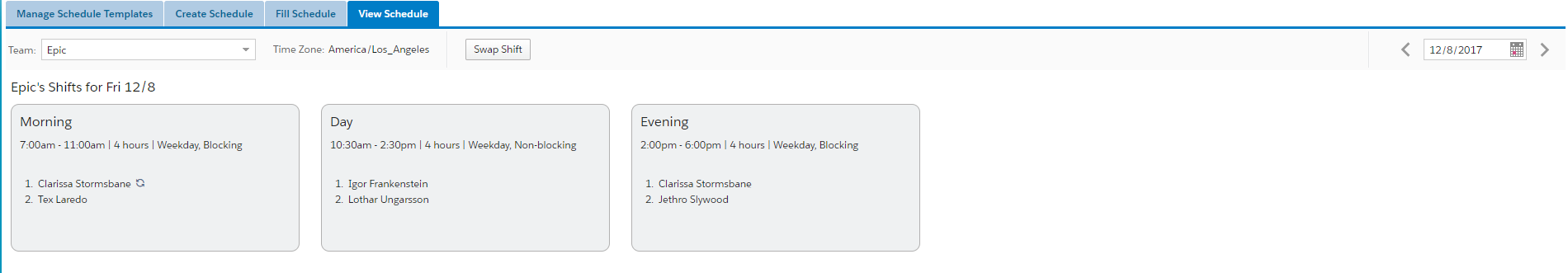 From this tab, each shift is divided into a card that displays: