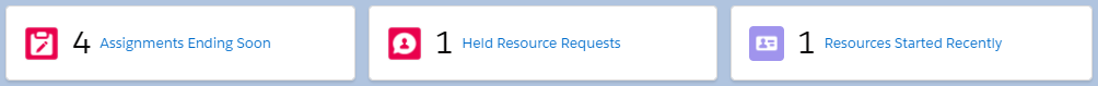 Your administrator can customize the Assignments Ending Soon, Held Resource Requests and Resource Started Recently count cards using the Lightning App Builder, for more information, see Setting up Certinia Count Cards.
