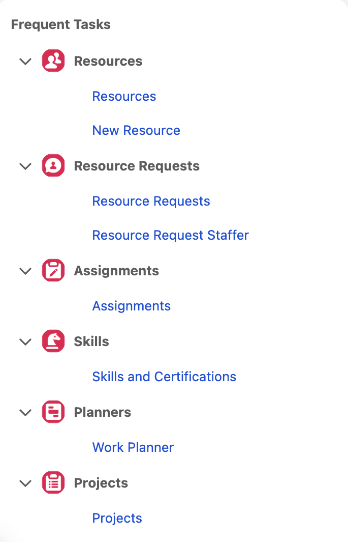The Resource Management links enable you to navigate to the most frequently accessed pages that are relevant to your role.