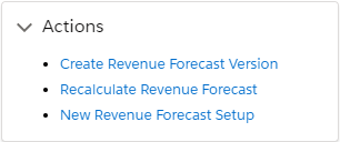 For more information on information on creating, recalculating and setting up Revenue Forecast Version, see Revenue Forecasting Overview.