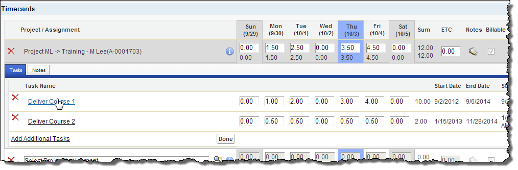 If your administrator has configured PSA to do so, you can enter time against project tasks while entering a timecard.