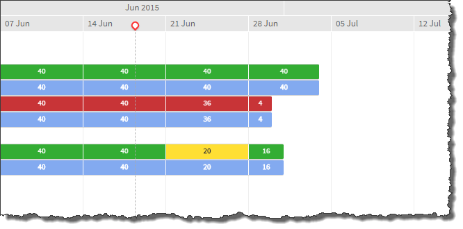 You can review a resource's allocation level using the color code.