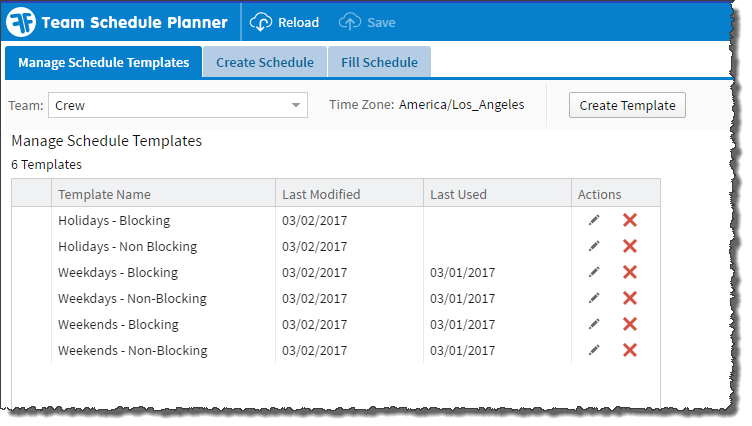 Using the Team Schedule Planner, you can create team schedules, schedule templates, and assign team members to schedules.