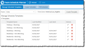 From the Manage Schedule Templates tab, you can view a list of templates, the last modified date for each template, and the last date each template was used. From this tab, you can also: