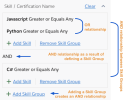 You can define Or/And relationships between skills in the Skill/Certification Name filter.
